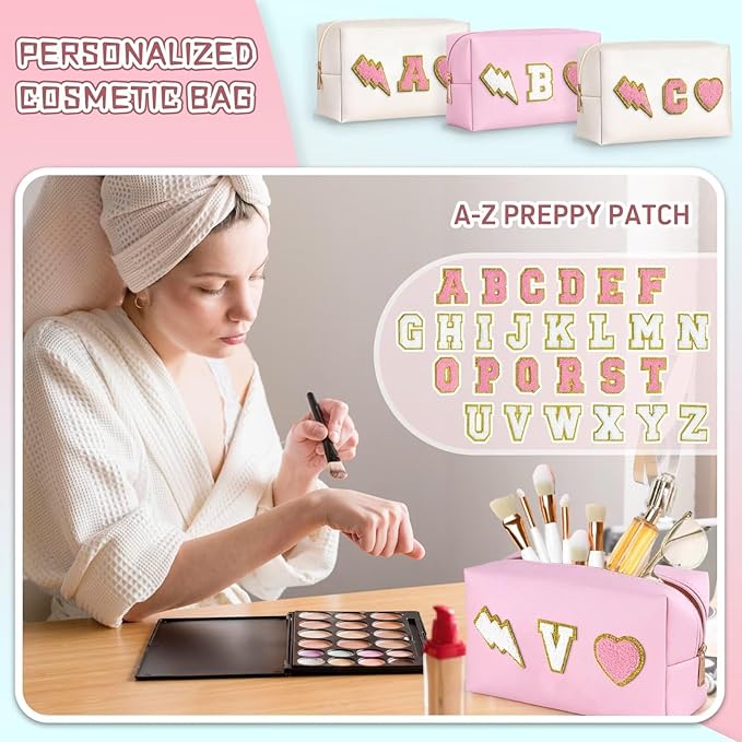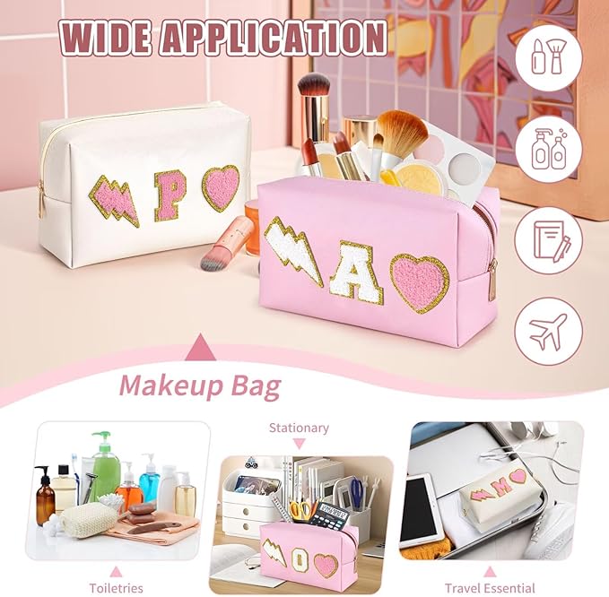 - 【Personalized Gift】Customized with initials, giving this makup bag a unique meaning. This initial makeup bag will be one-of-a-kind present for your loved ones, like your daughter, nieces, lover, sister, families, friends, colleagues, teen girls on Birthday, Valentines' day, Graduation, Christmas, and other holidays. You can never go wrong with a cute bag as a gift!