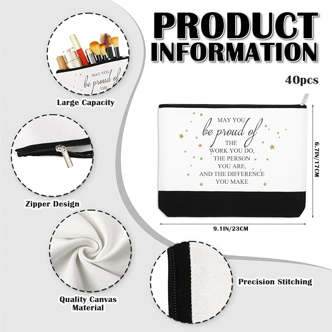 - Inspirational Quote Designs: text printed on bulk cosmetic bag inspirational is [may you be proud of the work you do, the person you are, and the difference you make], to cheer you up and express your sincere appreciation, and they all feature a simple and modern style, which will easily enjoy great popularity among people from different ages