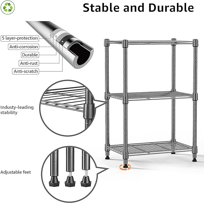 450 lbs Steel Storage Shelving 3-Tier Utility Shelving Unit Steel Organizer Wire Rack for Home,Kitchen,Office (11.8" D x 17.7" W x 26.3" H)