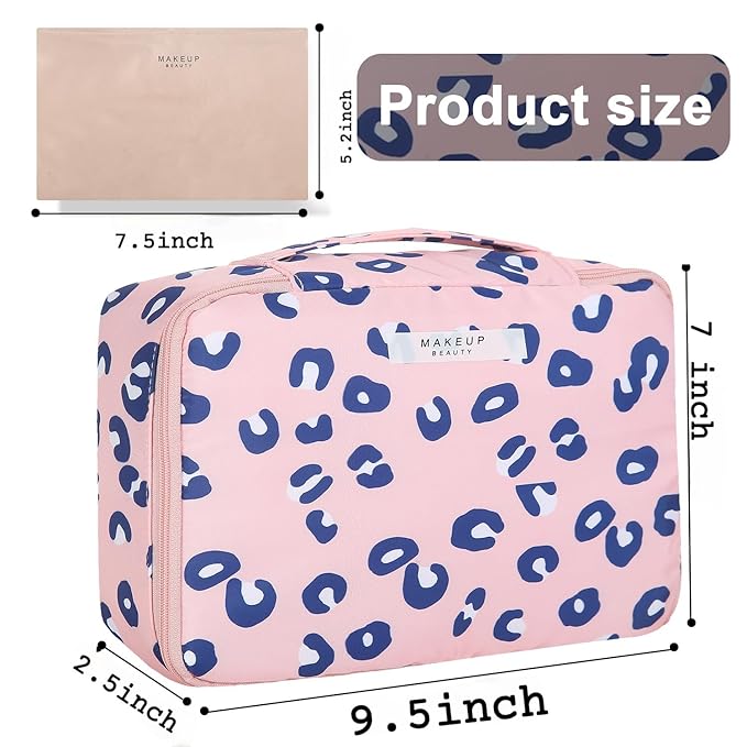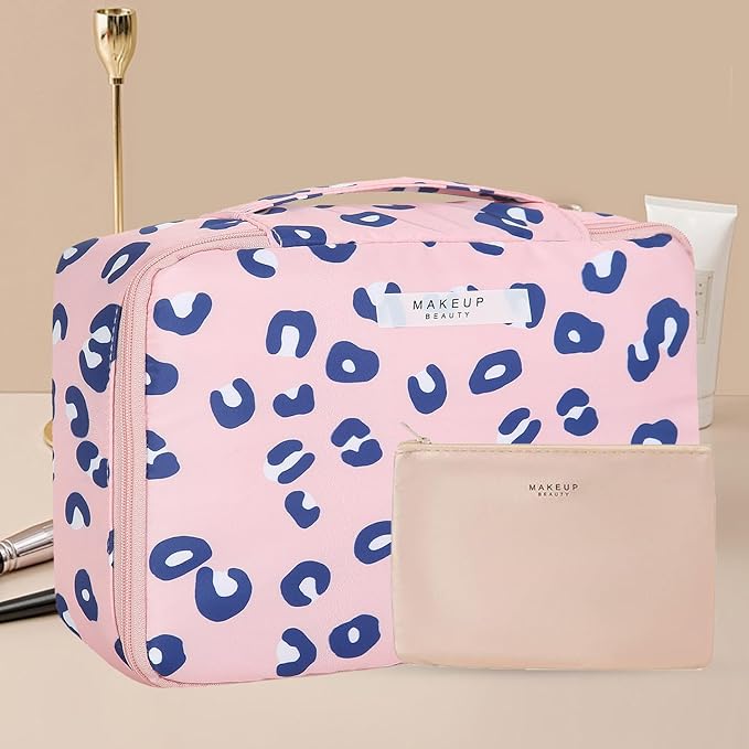 Travel Makeup Bag Cosmetic Bag Makeup Bag Toiletry bag for women and men (Pink Leopard)