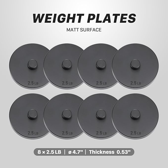 - PACKAGE CONTENTS: 8 pieces of 2.5 lb weight plates.