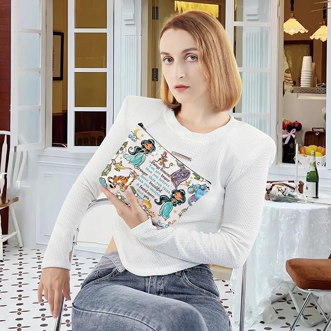 LEVLO Princess Arab Cosmetic Make Up Bag Fairy Tales Fans Gift You Are Braver Stronger Smarter Than You Think Princess Zipper Pouch Bag For Movie Fans (Always Jasm)