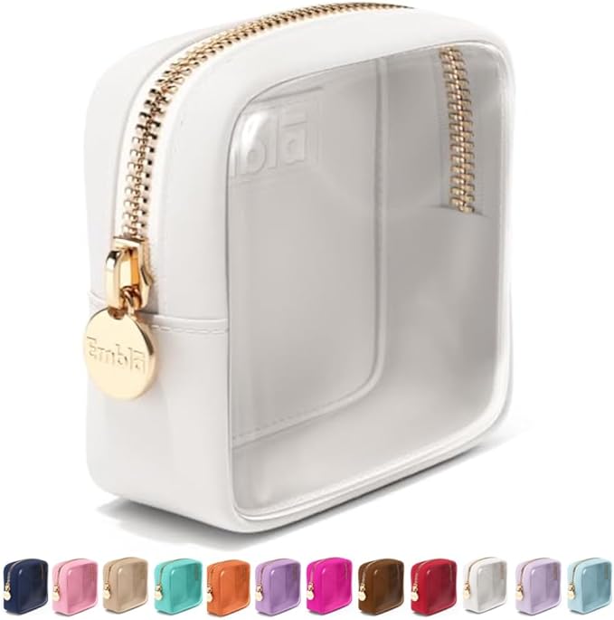 Embla Clear Cosmetic Bag Makeup Case, Clear Zipper Make Up Pouch and Toiletry Travel Tote, Cute Skincare Pouches for Women Girls, Preppy Purse Cosmetic Organizer, Mini Makeup Bags, White