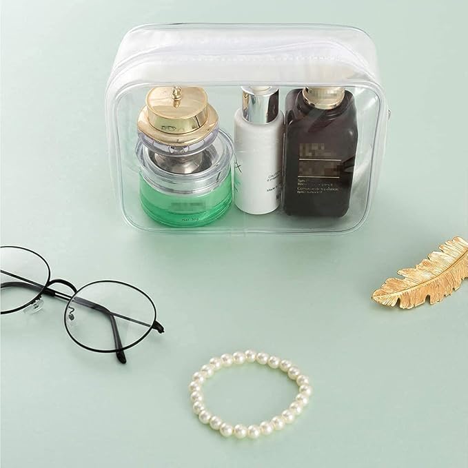 Clear Plastic Zippered Toiletry Carry Pouch TSA Approved Toiletry Bag Portable Cosmetic Makeup Bag for Vacation, Bathroom and Organizing (White 3Pcs, Large)