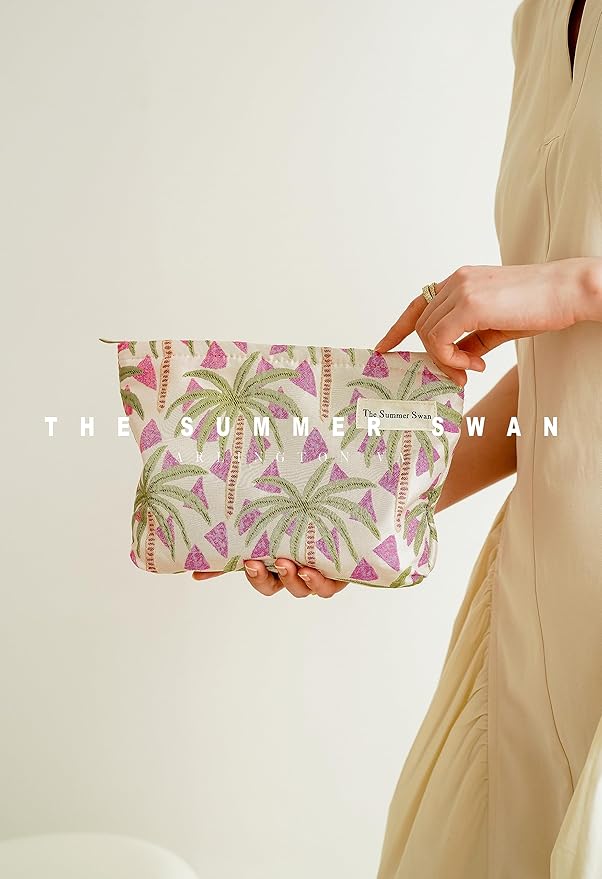 - [ * The Versatility * ] Cosmetic bag in your bathroom + Travel toiletry bag in your suitcase + Makeup pouch in your tote + Purse on the beach chair for your sunscreen & hotel keys. The Summer Swan fits your needs - no matter what may be.