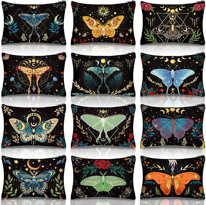 Kajaia 12 Pcs Butterfly Makeup Bags Cute Portable Travel Purse Toiletry Pocket Make up Organizer Storage Zipper Pouch Makeup Brush Cosmetic Bags for Women Adult Aesthetic Stuff