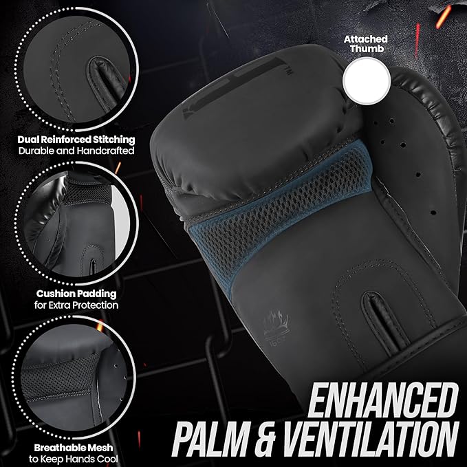 - ULTIMATE IN HAND PROTECTION: And comfort featuring a mesh palm with extra cushioning in the palm area and front interior to protect the upper side of your hand with added padding. With triple density foam padding and additional padding around the wrist, these boxing gloves women/men provide a secure and comfortable fit, ensuring optimal wrist support and interlocking connection between your wrist and the gloves.