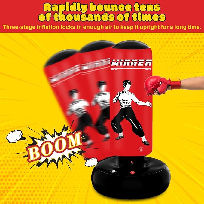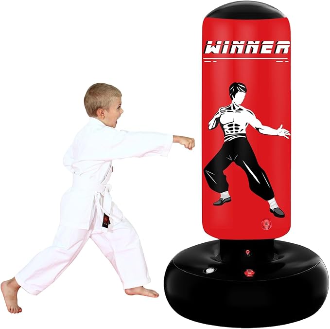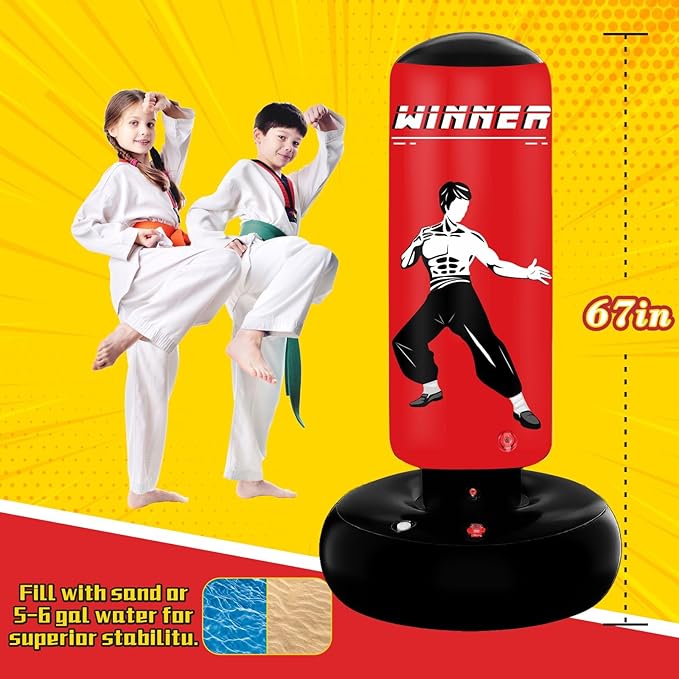 Kids Punching Bag, 67" Stable Inflatable Boxing Bag for Age 5-12, Ninja Karate Taekwondo Training Toy, Christmas Birthday Gift