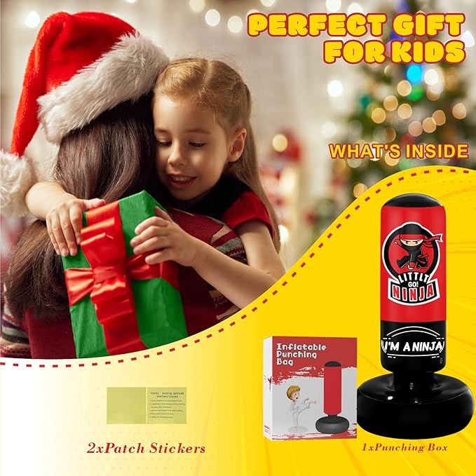 - COMPLETE ACCESSORIES: Includes 2 patch convenient use. A preferred gift for children to expend energy, step away from screens, relieve stress, and improve coordination—everything you need to create joyful moments with our boxing punching bag