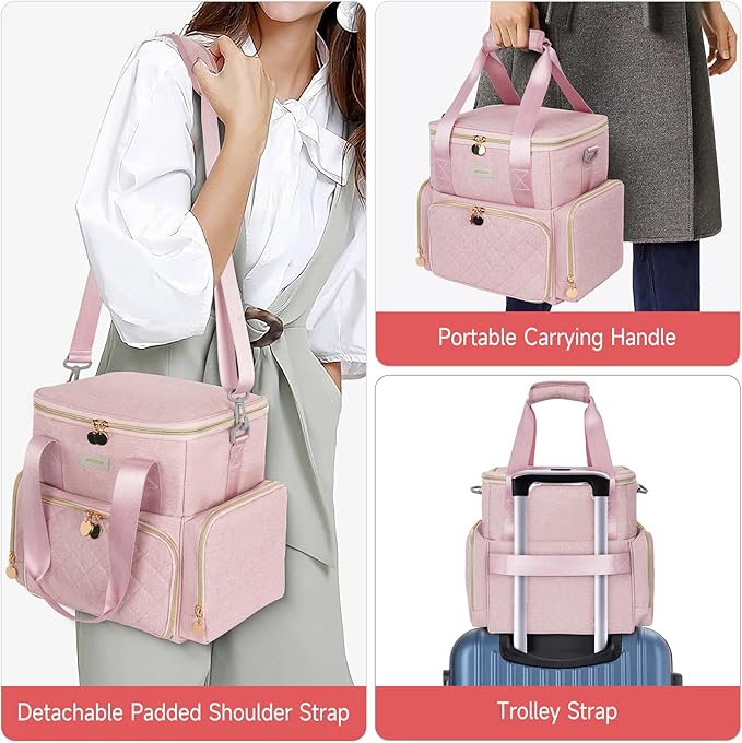 - 3 Ways to Carry: The makeup bag organizer travel is equipped with adjustable long shoulder straps, comfortable handles and travel-friendly luggage trolley straps, perfect for travel and home daily use.