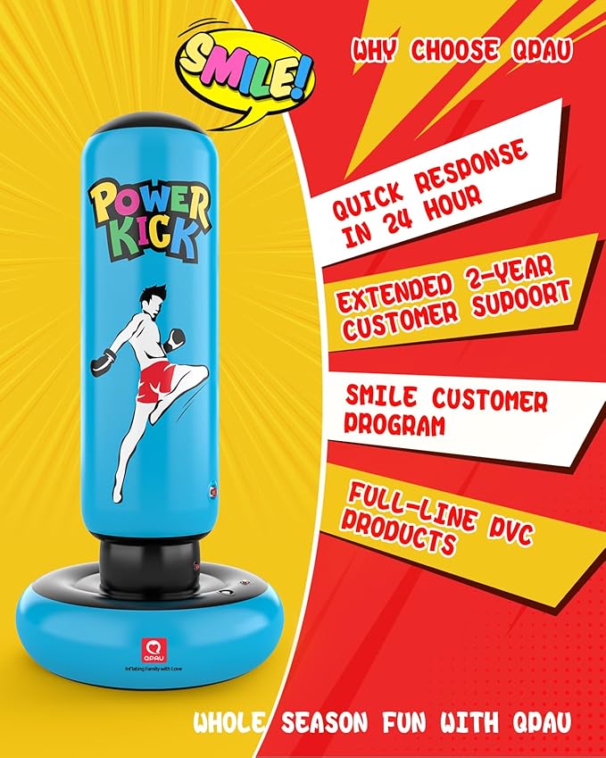 - FAST REBOUND: QPAU punching bag for kids provides a friendly boxing experience. No matter how forcefully you punch or kick the inflatable punching bag, it will immediately rebound thanks to the three separate air chambers.