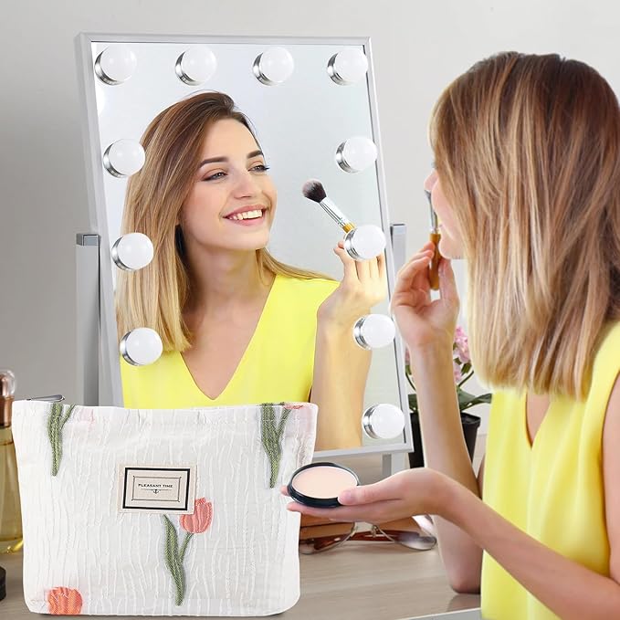 Tulip Makeup Bag Travel Cute Floral Cosmetic Bags for Women Large Embroidery Makeup Pouch Zipper Cosmetic Pouch for Purse Aesthetic Make up Organizer Bag Portable Toiletry Bag