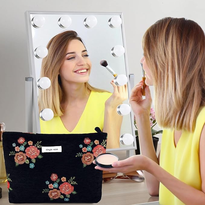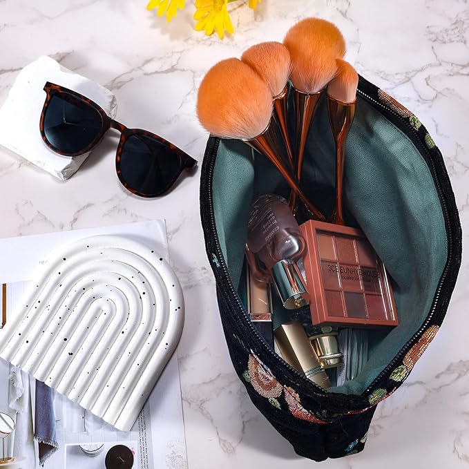- Large Capacity: Our flower makeup bag measures 10×7.1×2 inches, easy to carry. This flower cosmetic bag can easy to store small items such as skincare products, lipstick, eye shadow, eyebrow brush, etc. The makeup bag has a large capacity and folds up conveniently when not in use