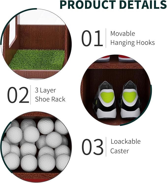 - Golf Gifts for Men: Compared to metal storage cabinets, the golf storage organizer made of high-quality wood can protect your golf clubs, preventing scratches and marks. Additionally, it comes with a lawn, providing an extraordinary visual delight whether placed in the garage, at home, or in the office.