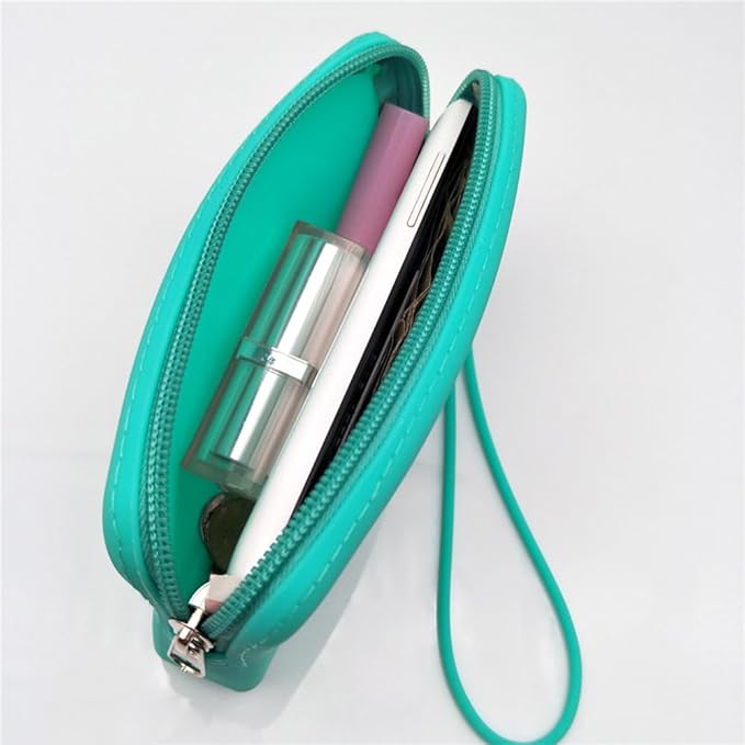 Silicone Small Makeup Bag Pouch for Purse, Travel Toiletry Bag Cute Portable Cosmetic Bag Waterproof Makeup Storage Bag Mini Zipper Clutch Makeup Organizer for Makeup, Beauty Tools (Small Green)
