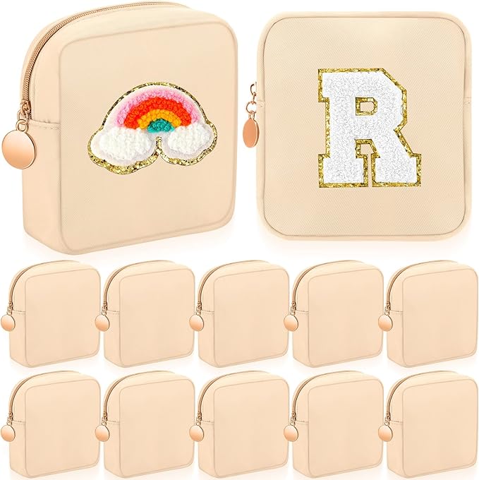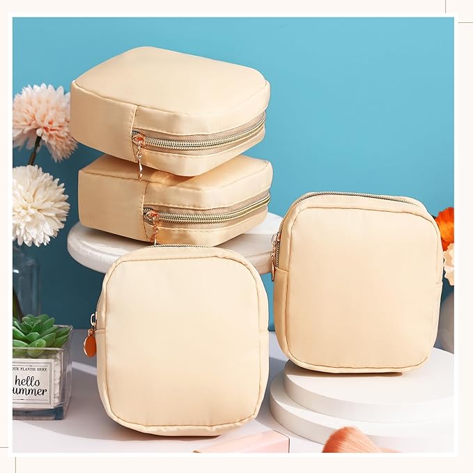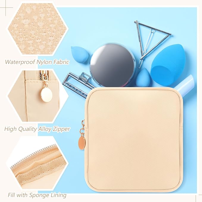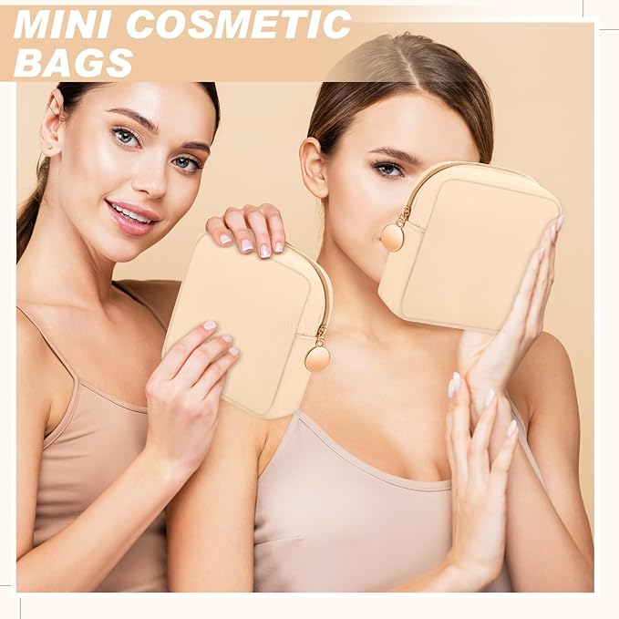 Kacctyen 12 Pcs Mini Makeup Bag Nylon Small Pouch for Purse Mini Square Nylon Pouch with Zipper Small Cosmetic Travel Makeup Bag Purse Organizer for Women(Beige Color,Regular)