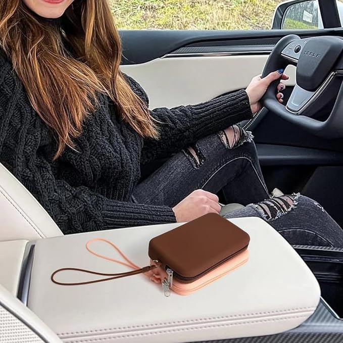 Silicone Small Makeup Bag Pouch for Purse, Travel Toiletry Bag Cute Portable Cosmetic Bag Waterproof Makeup Storage Bag Mini Zipper Clutch Makeup Organizer for Makeup, Beauty Tools (Small Brown)