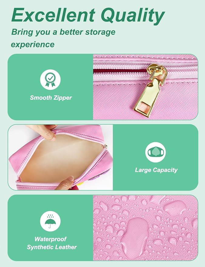 - ★QUALITY MATERIAL - Made of soft synthetic leather, the zipper makeup pouch is both flexible and waterproof. It's easy to clean, simply wipe away stains with a damp cloth