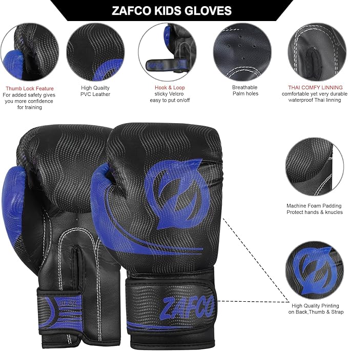 - ✅ANTI-PERSPIRATION HOLES: These Zafco kids boxing training gloves have a breathable pinhole palm that offers increased hygiene efficiency. Top quality bag gloves for kids to reduce offensive odors, moisture through children hands.