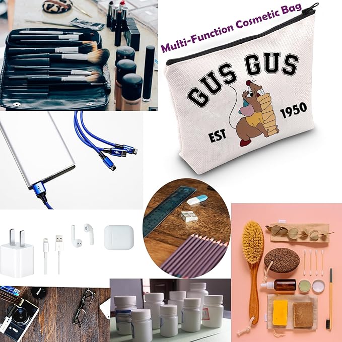 TSOTMO Cartoon Merchandise Fairy Tale Cosmetic Bag Fairy Princess Gift Mouse Gus Makeup Bag For Movie Fans (GUSGUS)