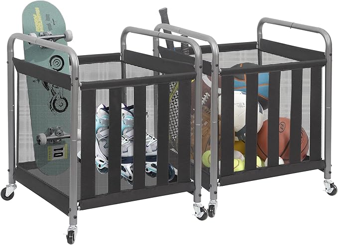 - 【SMOOTH ROLLING WHEELS】: The rolling sports ball storage features in 4 heavy-duty wheels, it is why the rolling ball cart can be easy to move the sports bins to indoors or outdoors. This storage for sports equipment is really convenient for storing basketballs, volleyballs, footballs, soccer balls, kids toys and so on