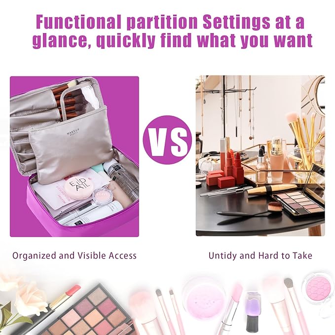 - 【Portable】Travel makeup bag is Portable and Lightweight,very suitable for storage of cosmetics in suitcase and easy to carry when traveling or on bussiness