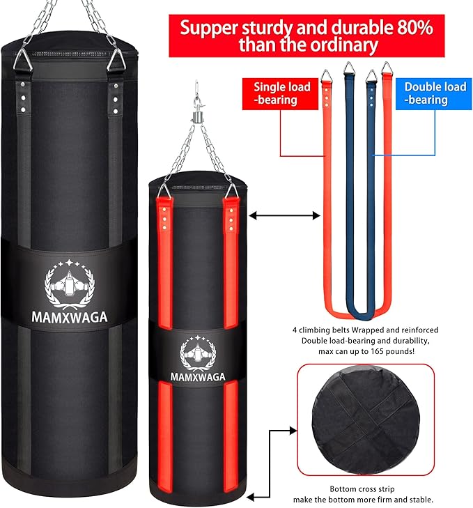 - Double load-bearing capacity: The punch bag has four strong climbing straps stitched on the four sides, This structure supper sturdy and durable 80% than others, max can hold up to 180 pounds!