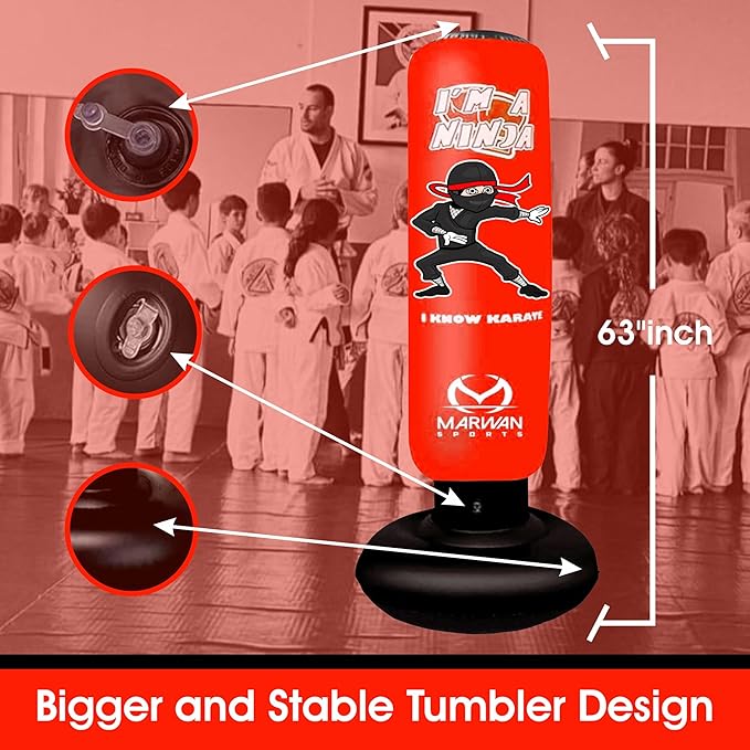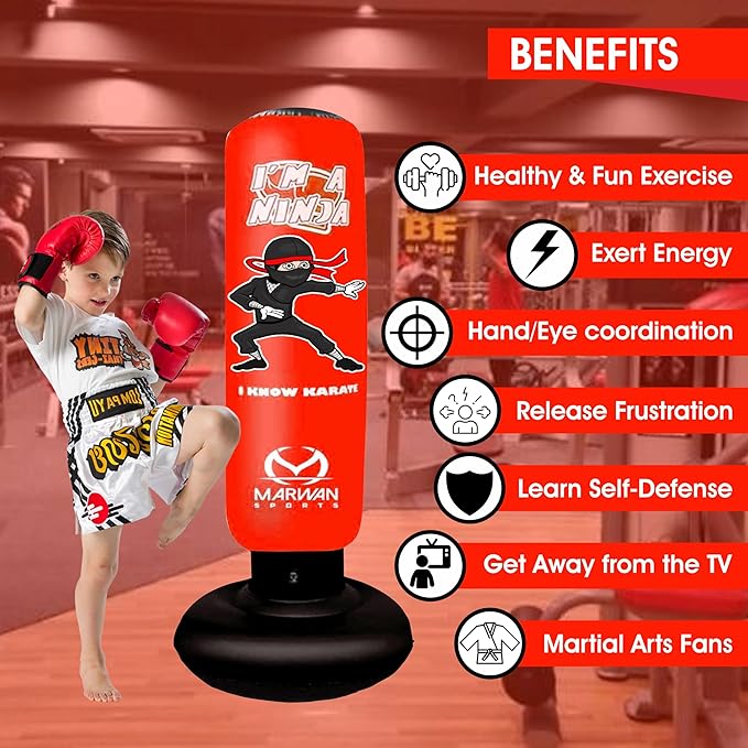 Durable Inflatable Kids Punching Bag for Karate and Boxing – Bounce-Back Martial Arts Bag for Boys and Girls, Great Birthday Gift to Relieve Energy and Build Skills for Boys Ages 4-12