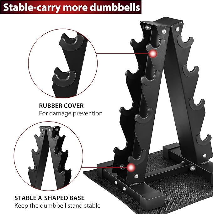 - 100 pounds set: 1x A-Frame rack (4-tier), pair of 5lbs, 10lbs, 15lbs and 20lbs