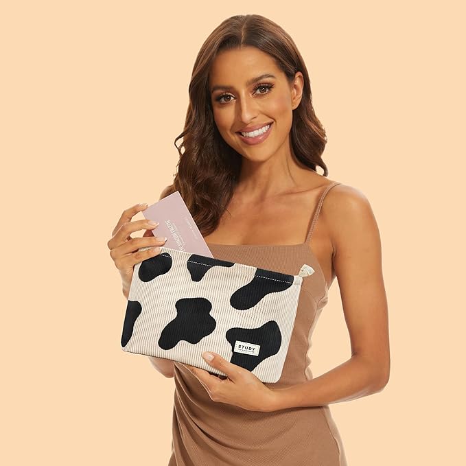 WLLWOO Makeup Bag-2pcs Cow Corduroy Cosmetic Bag Zipper Interior Waterproof Pencil Case Coin Purse Travel Toiletry Small Makeup Pouch For Women