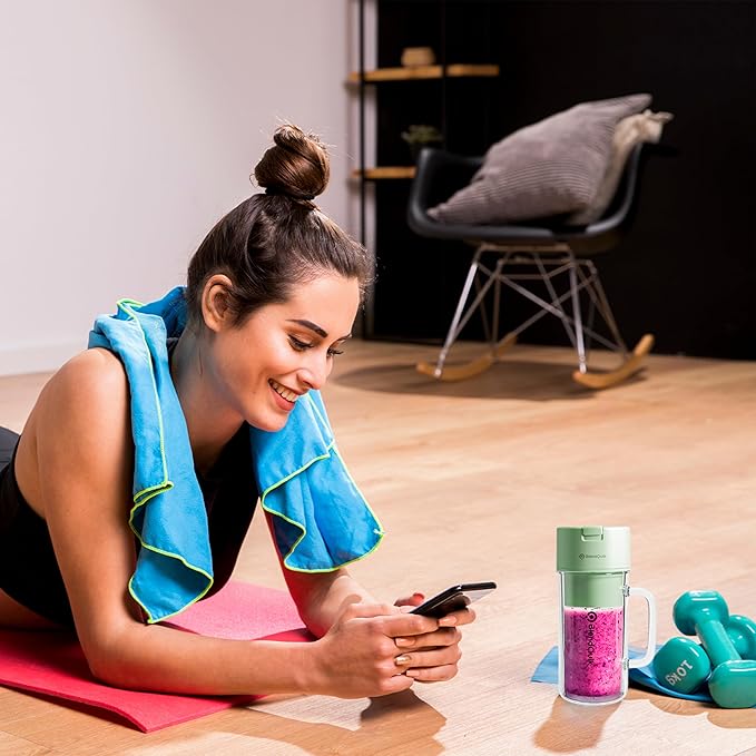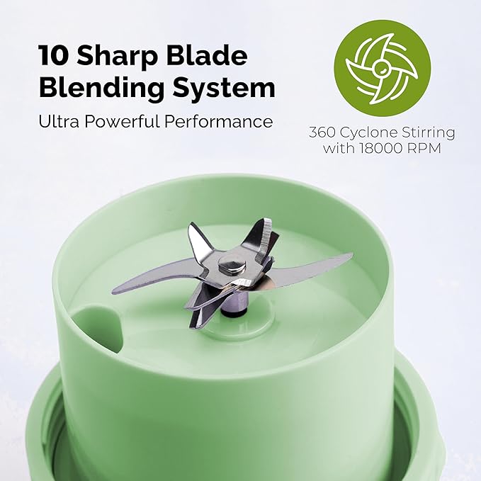 Personal Portable Blender For Shakes & Smoothies, Leakproof & Stylish Portable Mason Jar Shaker, Rechargeable Mini Blender with 10-Blade Blending System 14oz, Green
