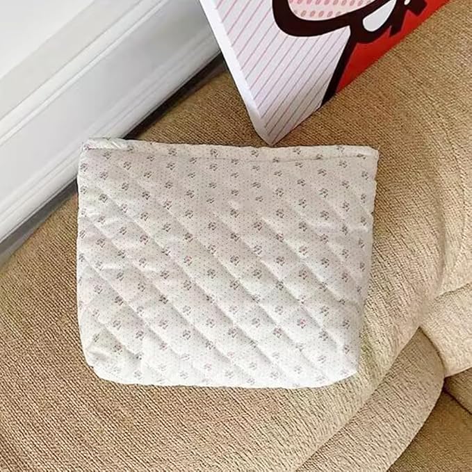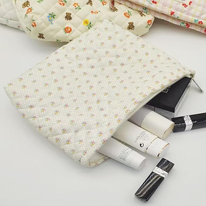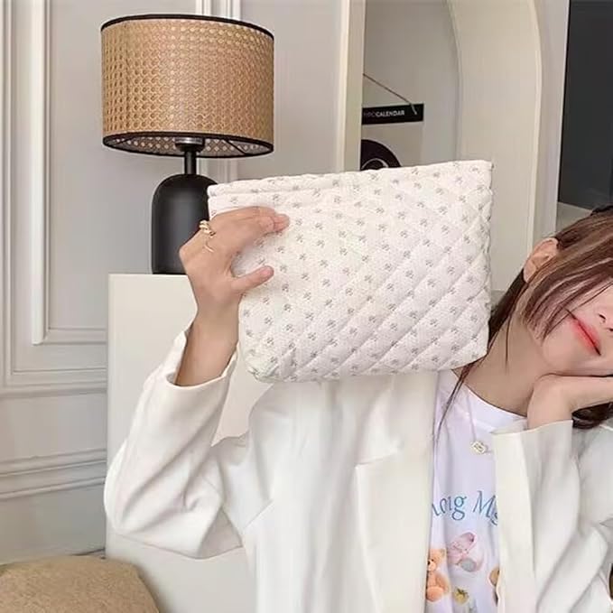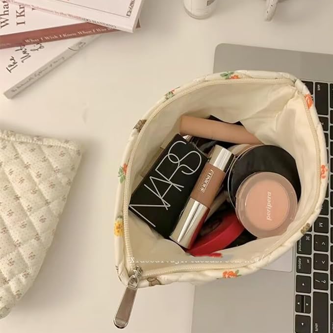 Cosmetic Bags for Women Makeup Bag Large Capacity Purse Travel Toiletry Zipper Storage Pouch Make up Brushes Organizer for Gifts (White, mini flowers)
