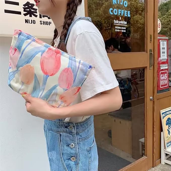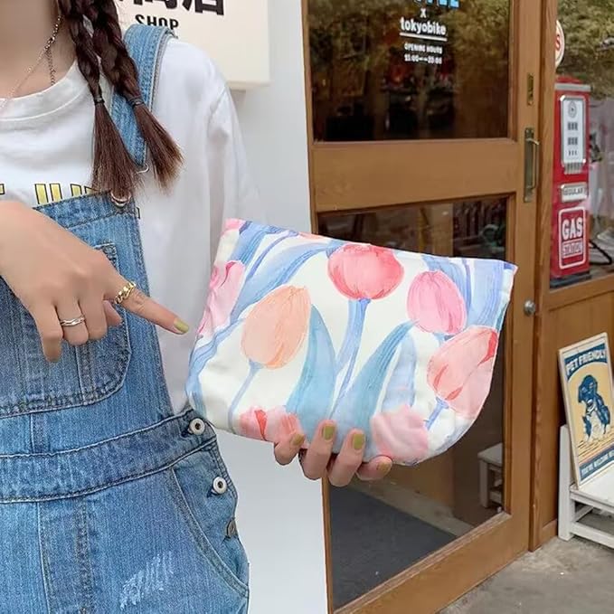 Cosmetic Bags for Women Makeup Bag Large Capacity Purse Travel Toiletry Zipper Storage Pouch Make up Brushes Organizer for Gifts (Pink, tulip)