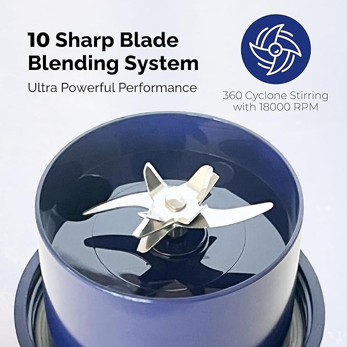 - Crushing Performance: The BlendQuik protein shake single-serve blender isn't just for smoothies and protein shakes; This portable blender for smoothies features a powerful 10-blade blending system that easily crushes ice, and even spices, turning your cooking experiences into flavorful adventures