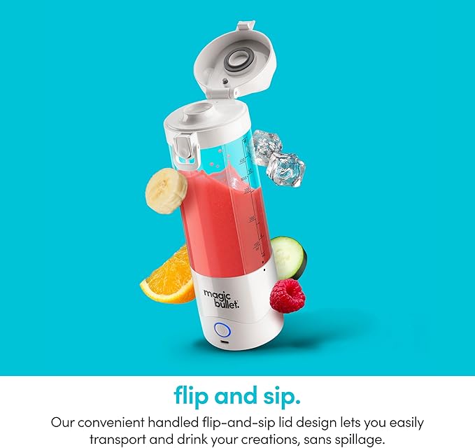 - Our convenient handled flip-and-sip lid design lets you easily transport and drink your creations, sans spillage.