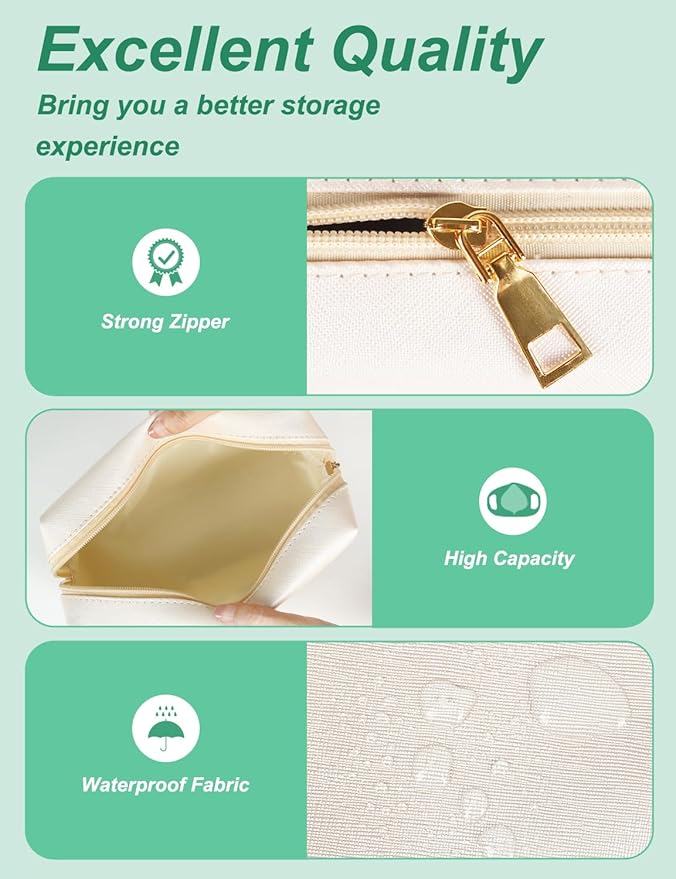 - ★QUALITY MATERIAL - Made of soft synthetic leather, the zipper makeup pouch is both flexible and waterproof. It's easy to clean, simply wipe away stains with a damp cloth. Lovely and practical, this make-up bag is the perfect gift for mum, daughters, girlfriend and schoolgirls