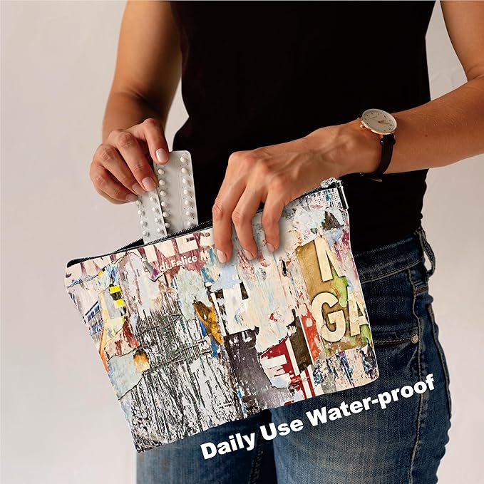 Art Theme Makeup Bag - Retro Posters Texture - Vintage Printing Cosmetic Bag, Toiletry Bag Gift For Girls, Teen, Personal Care & Accessories - A10