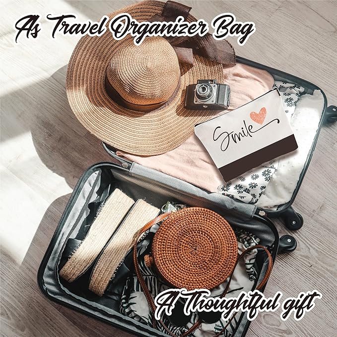 - MATERIAL: The makeup bag is made of linen with a waterproof layer inside, durable zipper easily store your cosmetics, such as makeup brushes, mascara, lipstick, etc.