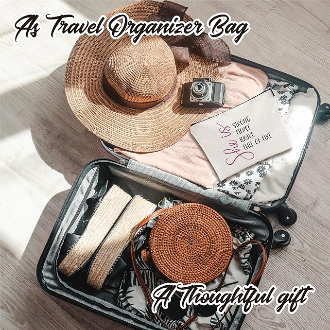 Minimalism Makeup Bag - She Is Strong, Fierce, Brave, Full Of Fire - Energy Quotes Cosmetic Bag, Toiletry Bag Gift For Girls, Teen, Personal Care & Accessories(Bright) - A07