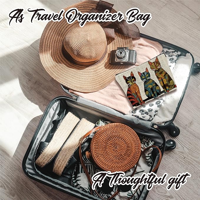 Vintage Makeup Bag - Three Cute Cats - Art Drawing Theme Cosmetic Bag, Toiletry Bag, Gift For Girls, Besties, Personal Care & Accessories - A23