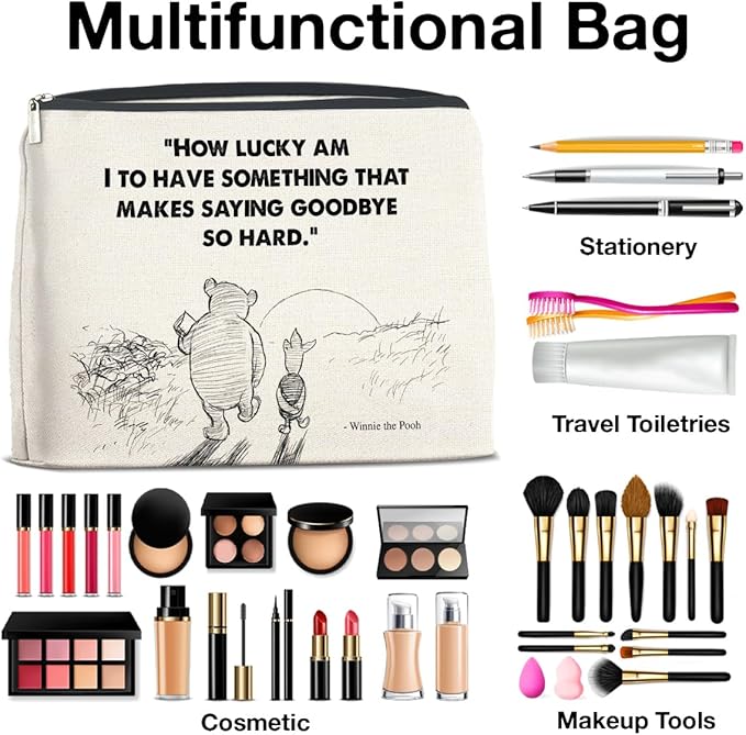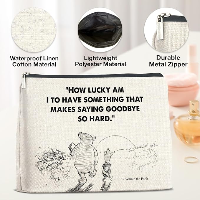 - Meaningful Gifts: This Winnie the Pooh themed cosmetic bag is a great gift option. Thoughtful and meaningful. The classic Winnie the Pooh elements and language are suitable for gifts to sisters, good friends, best friends, daughters, granddaughters, stepdaughters, wives, girlfriends, etc.