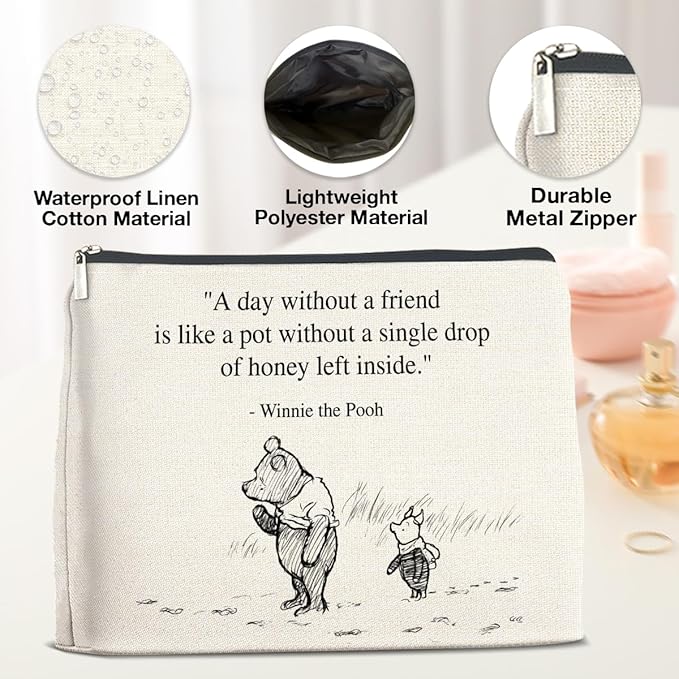 - Meaningful Gifts: This Winnie the Pooh themed cosmetic bag is a great gift option. Thoughtful and meaningful. The classic Winnie the Pooh elements and language are suitable for gifts to sisters, good friends, best friends, daughters, granddaughters, stepdaughters, wives, girlfriends, etc.