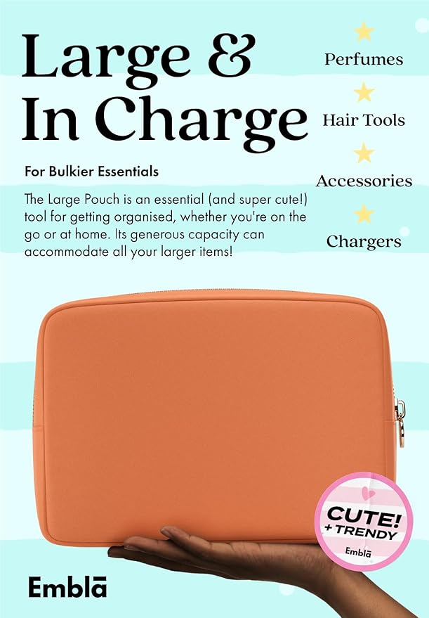 - Designed in London, the home of fashion. Embla offers a large selection of styles, sizes and colors to match your personal style - Big or small, extra large (XL) or mini, we have it all! Choose from our variety of cute, preppy and trendy styles and color tones including Black, Pink, Violet, Purple, Blue, White, Mint, Green, Orange, Peach, Lavender or Brown. Great gift for mother, grandmother, daughter or anyone else who could benefit from a high quality portable and lightweight beauty bag.