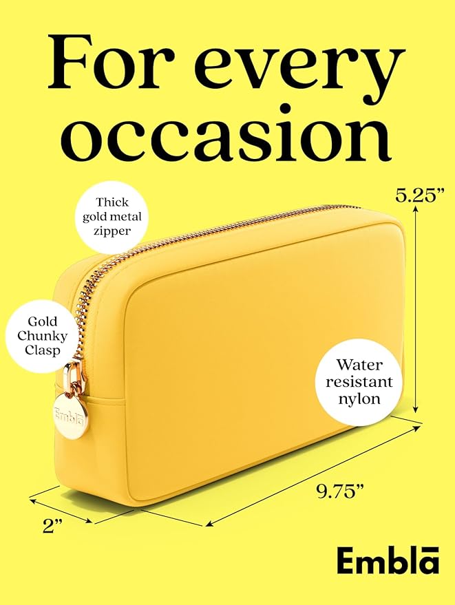 - Lightweight Travel Cosmetic Bag – The Embla small travel makeup bag measures 9.75 x 5.25 x 2 inches making it large enough to carry and organize all of your beauty essentials including your makeup, hair brushes, make up brushes, eye liner, hair ties, perfume and other items, yet small enough to easily pack in your carry on suitcase, tote, gym bag or shoulder bag. Great makeup pouch for travel or daily use.