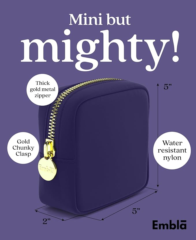 - Compact and Lightweight Cosmetic Bag – The Embla mini travel makeup bag measures 5 x 4.75 x 2 inches making it the perfect size to carry and organize all of your beauty essentials including your makeup, make up brushes, eye liner, hair ties, lip gloss, perfume and other items, while small enough to easily carry in your purse, tote, gym bag, shoulder bag, backpack or pack in a carry on suitcase. Great makeup pouch for travel or daily use.