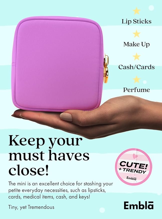 - Designed in London, the home of fashion. Embla offers a large selection of styles, sizes and colors to match your personal style - Big or small, extra large (XL) or little. we have it all! Choose from our variety of cute, preppy and trendy styles and color tones including Black, Pink, Violet, Purple, Blue, White, Mint, Green, Orange, Peach, Lavender or Brown. Great gift for mother, grandmother, daughter or anyone else who could benefit from a high quality compact and lightweight beauty bag.