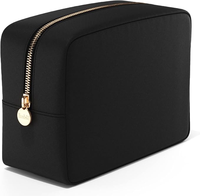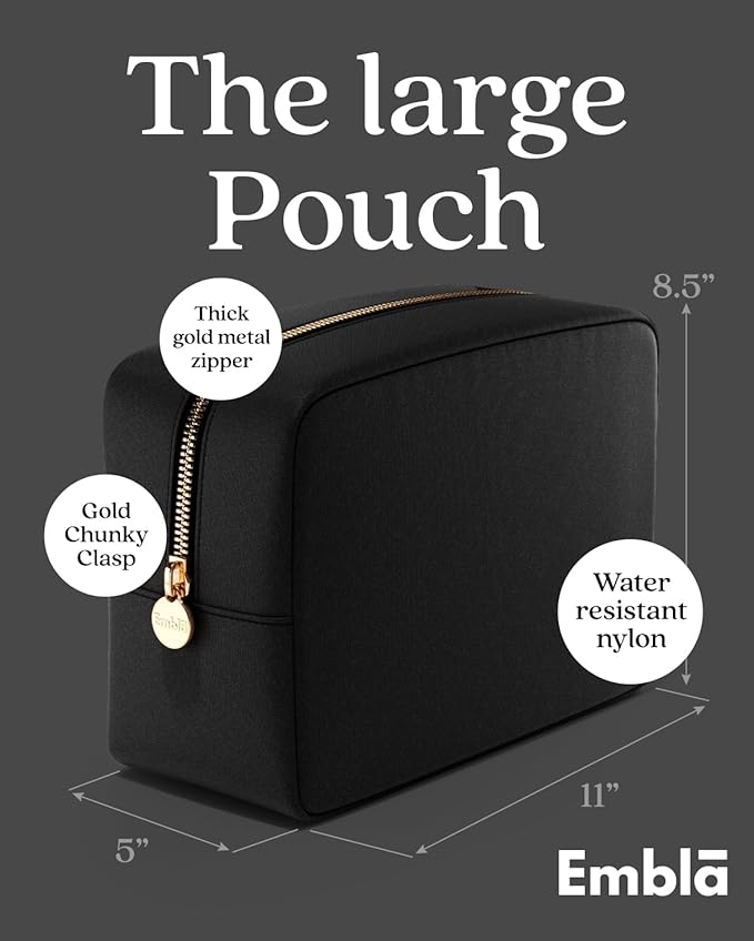 Embla Makeup Bag Travel Cosmetics Pouch and Toiletry Bag, Nylon Zipper Pouch Purse, Cute Make Up Organizer Storage Tote for Women Girls, Waterproof Travel Skincare Case, Large Makeup Bags, Black Noir