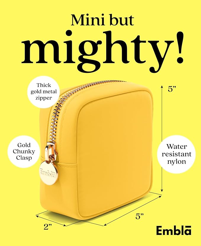 - Compact and Lightweight Cosmetic Bag – The Embla mini travel makeup bag measures 5 x 4.75 x 2 inches making it the perfect size to carry and organize all of your beauty essentials including your makeup, make up brushes, eye liner, hair ties, lip gloss, perfume and other items, while small enough to easily carry in your purse, tote, gym bag, shoulder bag, backpack or pack in a carry on suitcase. Great makeup pouch for travel or daily use.