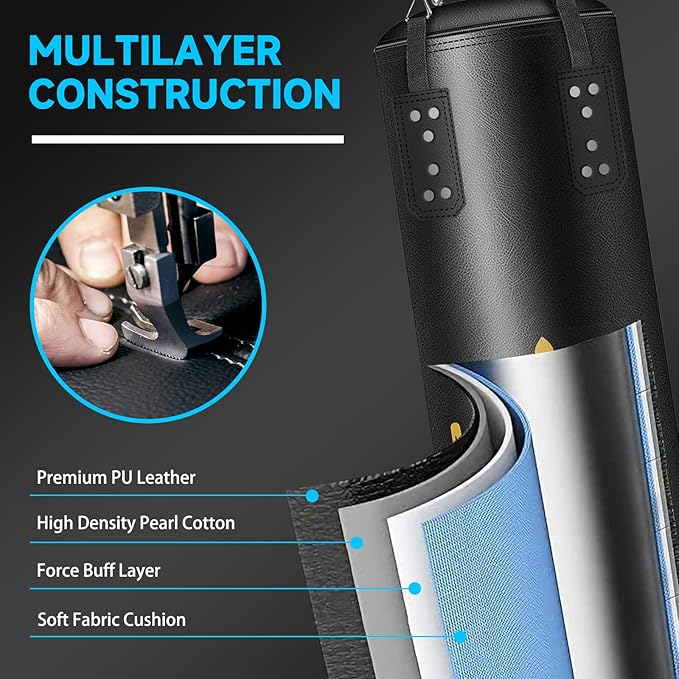 - 80 lb Capacity - Our heavy duty construction allows up to 80 lbs of weight on the punching bag, giving you the ultimate workout experience. Plus, it comes with a carabiner for quick and easy connection.