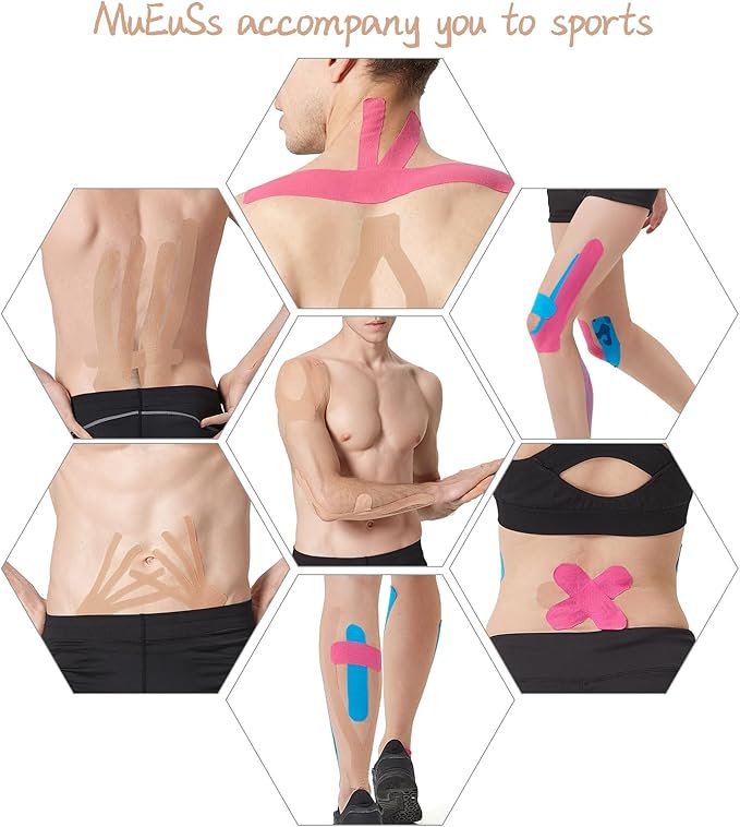 - MUEUSS Kinesiotape Tape is made from 95% Cotton 5% Spandex thin fabric, porous fabric makes skin breathe better beneath the tape, moisture-wicking,humidity resistance, Lightweight and comfortable,provides both support & mobility and based on athletic tape standard to help you get through Weightlifting, rock climbing, judo, football, volleyball, gymnastics, baseball, hockey.